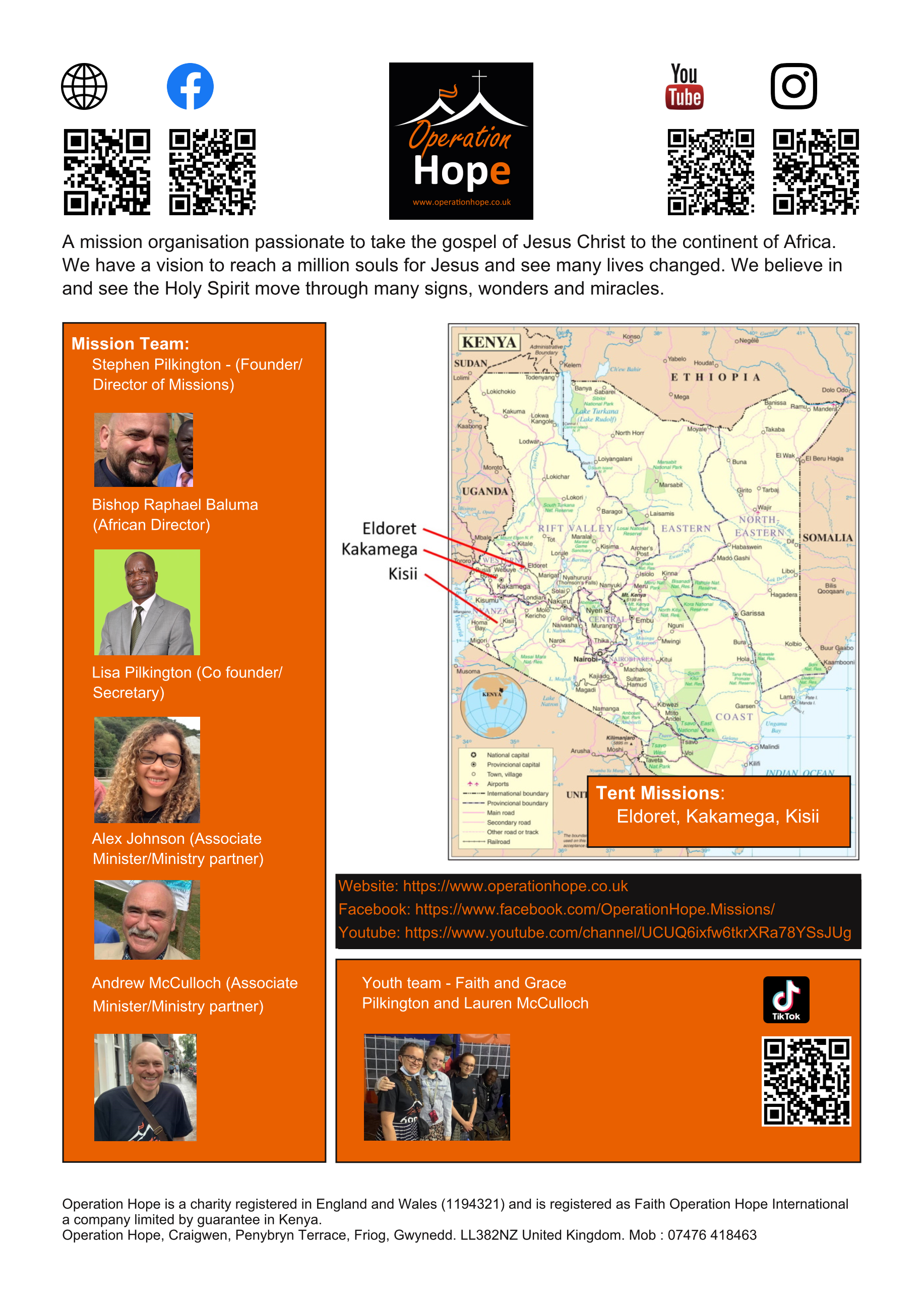 We publicise the work of Operation Hope through our website (which you are reading now), our social media facebook and instagram pages and our youtube video channel. You can help through sharing our facebook and instagram posts and subscribing to our Youtube channel, requesting notifications of new videos and sharing the channel.